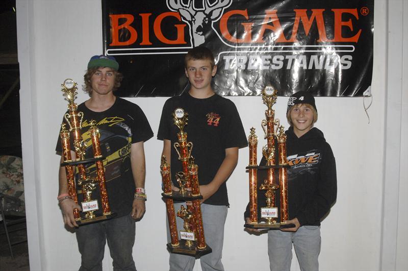 Kaleb entered the weekend hoping to wrap up a couple of Championships in the Midwest Speedway Tour. On Saturday he did everything he possibly could to secure the championships as he won all 3 flathead features at the Heartland Speedway just south of Rapid City, SD. thus earning the triple crown championships. Kaleb also ran the 15 lap Big Game Challenge on Saturday as he started 5th and ended up with that trophy as well.